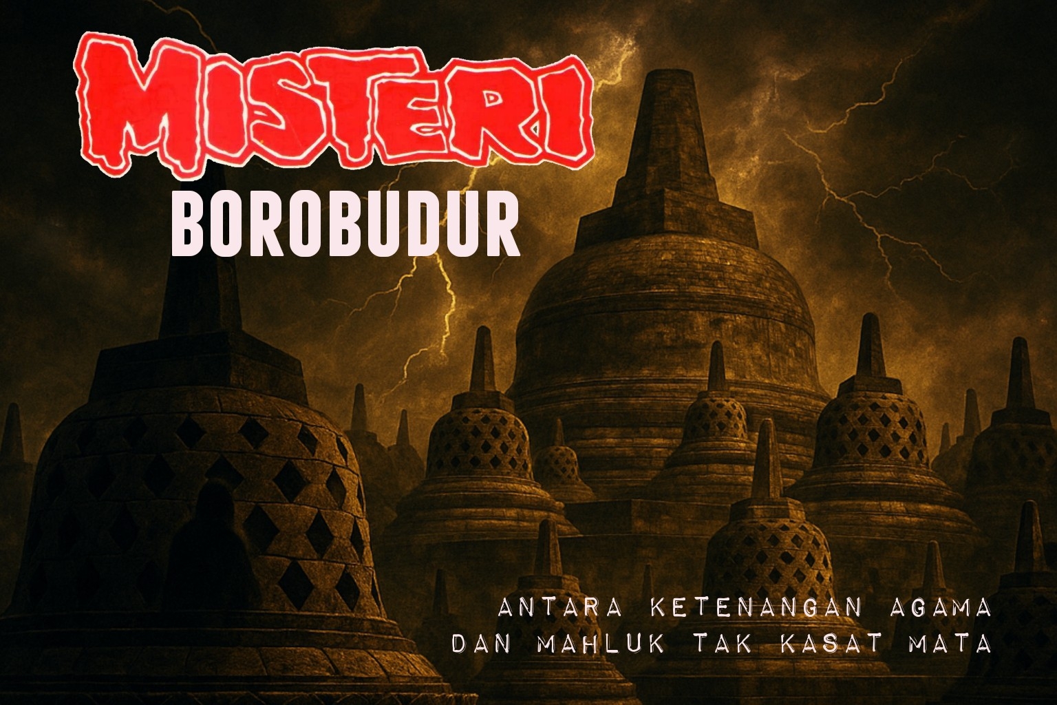 Ilustrasi Borobudur malam, suasana mistis